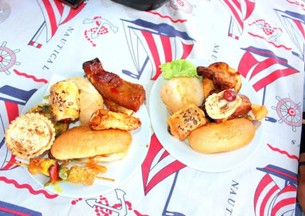 Buffet of Hot & Cold Finger and Fork Gourmet Food onboard.
