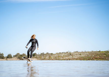 Our idyllic dam, sheltered from the elements, is nestled amidst the scenic Winelands, providing the perfect backdrop for your efoil escapade. Safety is our top priority, and we equip you with all the essentials: wetsuits, helmets, leashes, and impact vests.