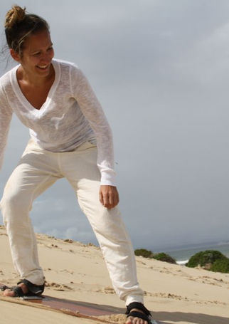 Sandboarding on the scenic dunes of Jeffreys Bay, if you can stand you can sandboard. Easy to learn and fun for all ages.